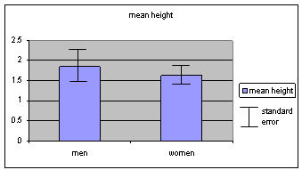 DiscussionThe standard error gives a measure of how well a sample represents the population. When the sample is representative, the standard error will be small. The division by the square root of the sample size is a reflection of the speed with which an increasing sample size gives an improved representation of the population, as in the example above. An approximation of confidence intervals can be made using the mean +/- standard errors. Thus, in the above example, in Sample 4 there is a 95% chance that the population mean is within +/- 1.4 (=2*0.70) of the mean (4.78). Graphs that show sample means may have the standard error highlighted by an 'I' bar (sometimes called an error bar) going up and down from the mean, thus indicating the spread, for example as below: